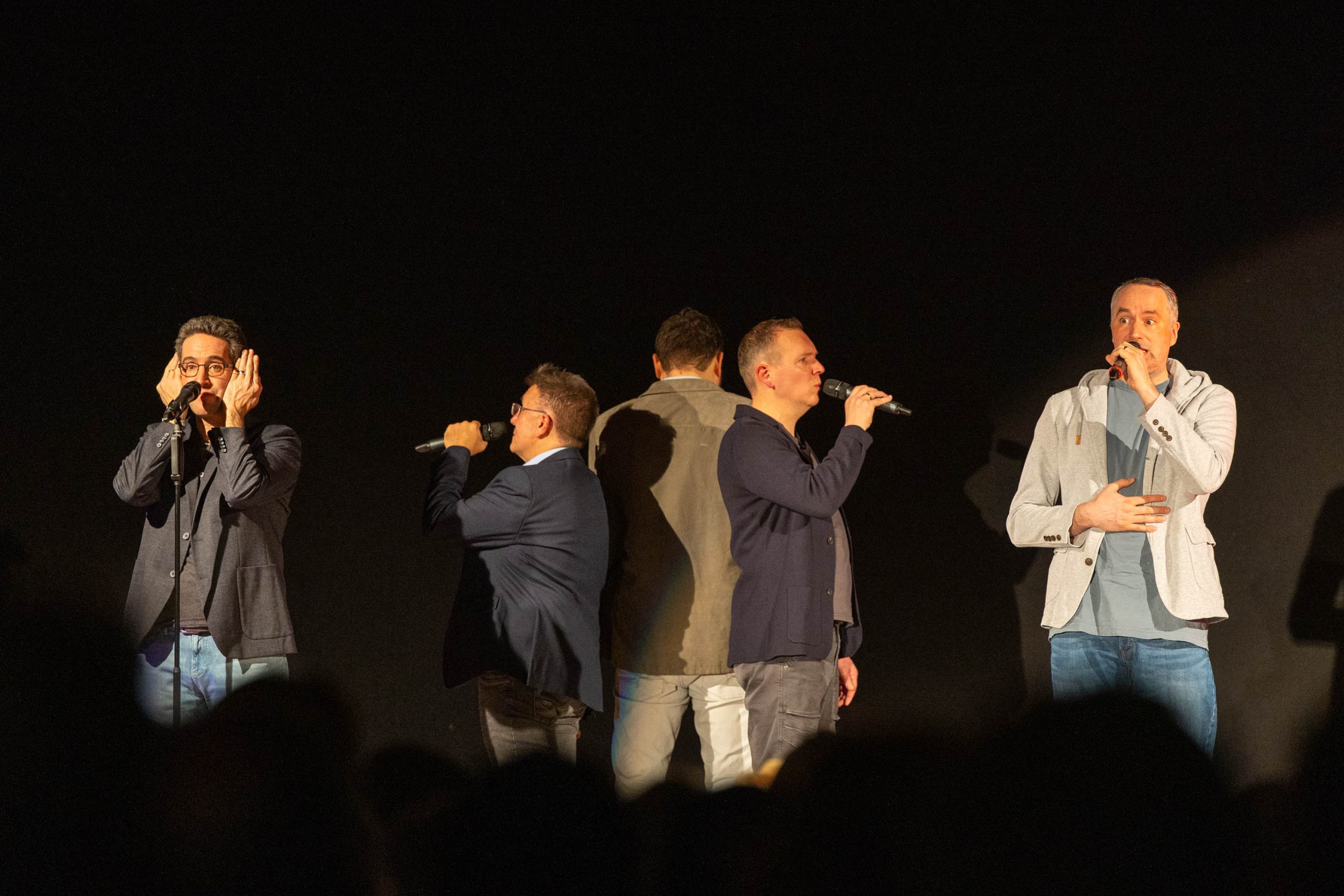Dass es morgens noch spiegelglatt auf den Straßen war und nachts wieder werden sollte, hielt das Wallenhorster Publikum nicht davon ab, in die seit Wochen ausverkaufte Gymnastikhalle zu kommen. Dort präsentierte die Osnabrücker A-Cappella-Gruppe „Draufsänger“ auf Einladung der Gemeinde Wallenhorst am Freitag, 23. Januar, sich und ihr Programm „ohne Filter“.