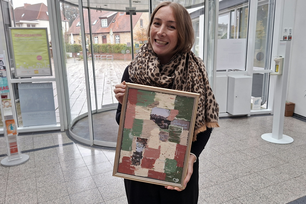 Bilder, die man freirubbeln muss, sind besonders spannend. Leonie Winter zeigt die Basteltechnik an einem Beispiel. Foto: Gemeinde Wallenhorst