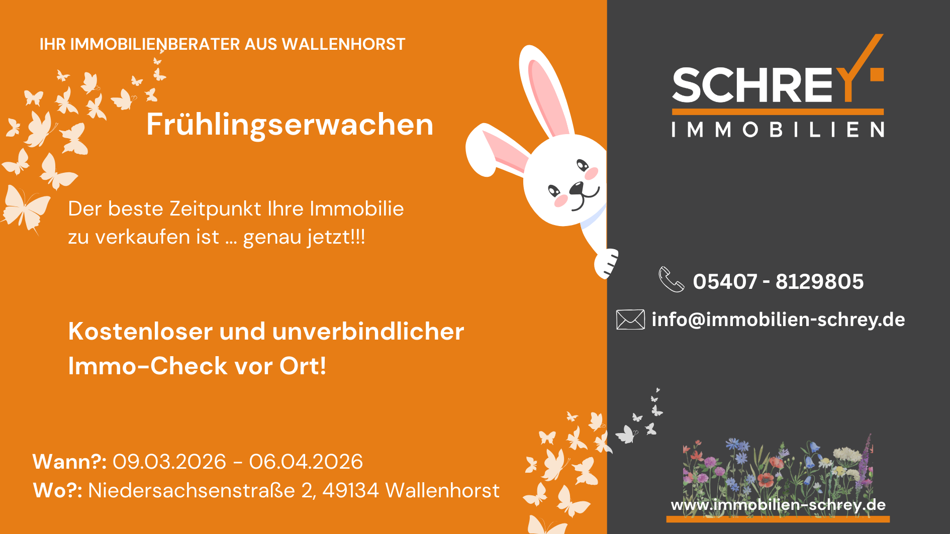 In diesem Jahr feiert Wallenhorst sein 1175-jähriges Jubiläum – ein besonderer Anlass für unsere Gemeinde. Passend dazu findet vom 9. März bis zum 6. April das Frühlingserwachen statt. Egal, ob Sie darüber nachdenken, Ihre Immobilie zu verkaufen oder ein neues Zuhause suchen: Wir beraten Sie gerne persönlich und unverbindlich zu Ihren Möglichkeiten auf dem Immobilienmarkt. Kommen Sie einfach bei uns vorbei – gemeinsam finden wir die passende und sinnvollste Lösung für Ihr Immobilienvorhaben. Wir freuen uns auf Ihren Besuch.