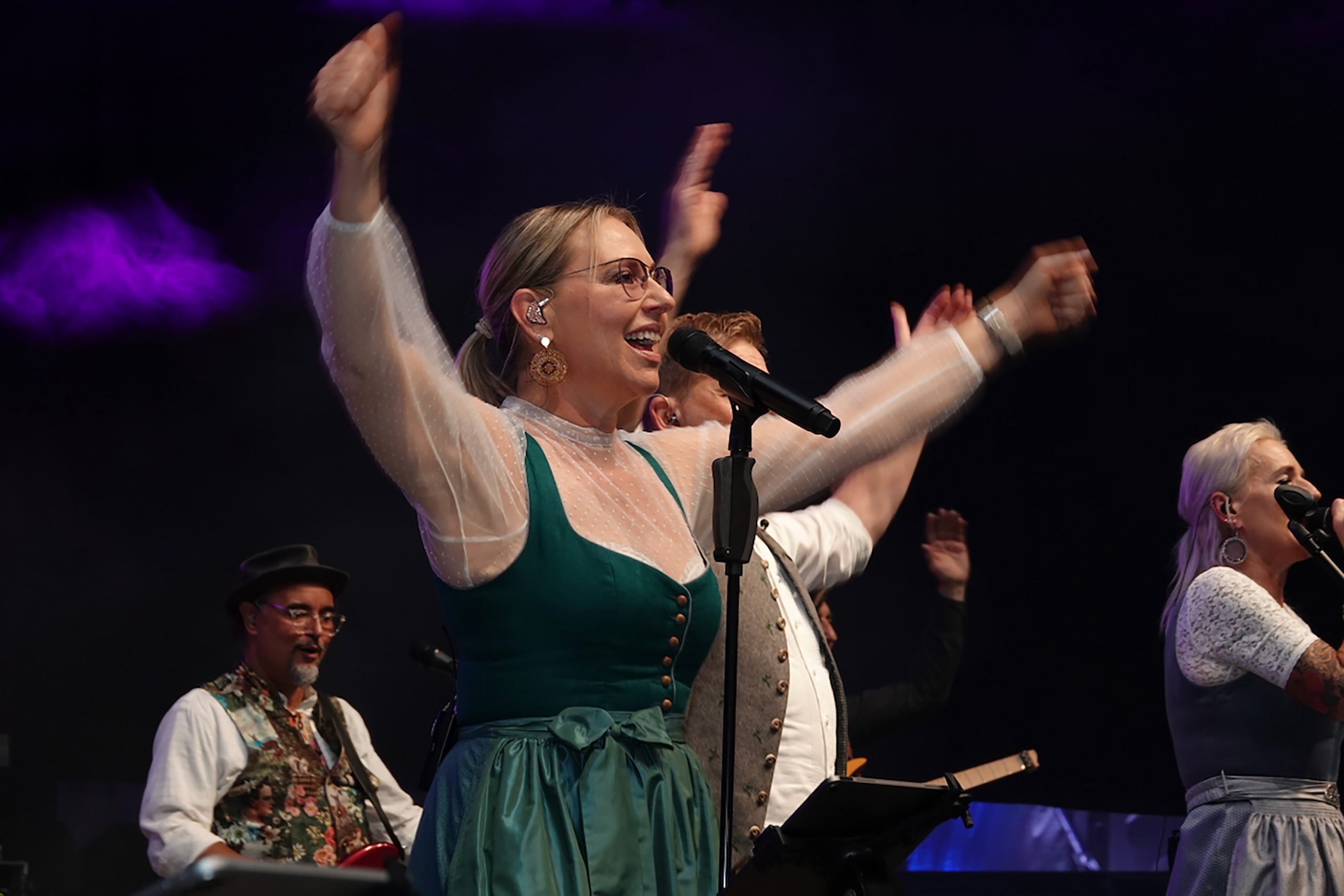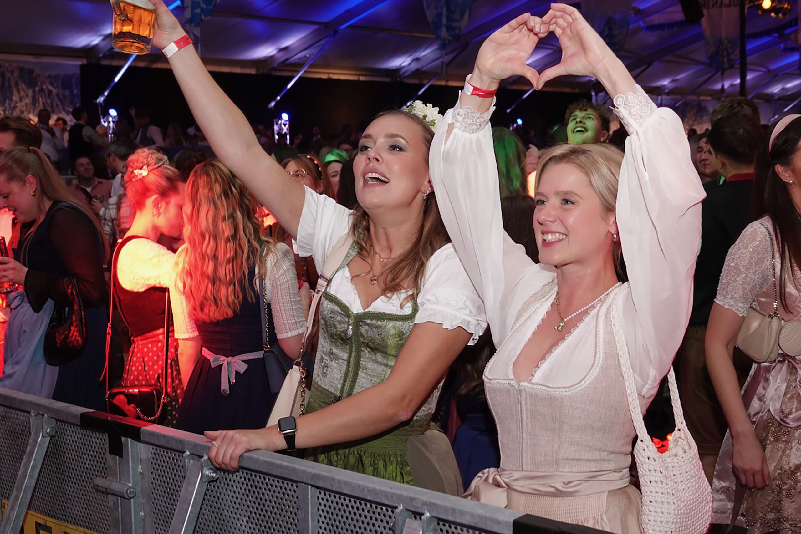 Nach ihrer fulminanten Premiere vor zwei Jahren rockte die Münchner Band Take Five wieder das Zelt in Hollage. Verstärkt mit doppelter Frauenpower an den Mikrofonen zogen die fünf Musiker die stilecht in Dirndl und Lederhosen gekleideten Gäste auf die Tanzfläche oder animierten sie an den Tischen und in den Wiesnboxen kräftig mitzufeiern.