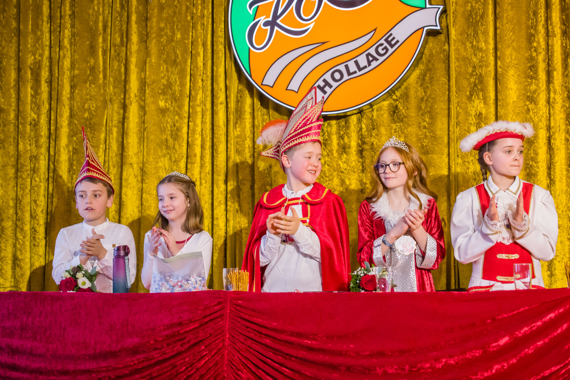 Ihnen wurde dabei ein buntes Showprogramm geboten, bei dem sie nicht nur zuschauen, sondern auch mitmachen konnten. KKC-Präsident Ansgar Speer, der unterstützt vom Kinderelferrat durchs Programm führte, holte nicht nur einen Showact nach dem anderen auf die Bühne – unter anderem die KKC-Tanzgruppen sowie Michael Lührmann und Maik Hörnschemeyer mit ihren Sketch-Einlagen – auch die Kinder durften selbst hinauf und tanzen. Auch das „große Prinzenpaar“ Prinz Albin I. und Prinzessin Marika I. (Albin und Marika Sonneck) mit ihren Ministern und Funkenmariechen Maja Torbecke feierte kräftig mit.