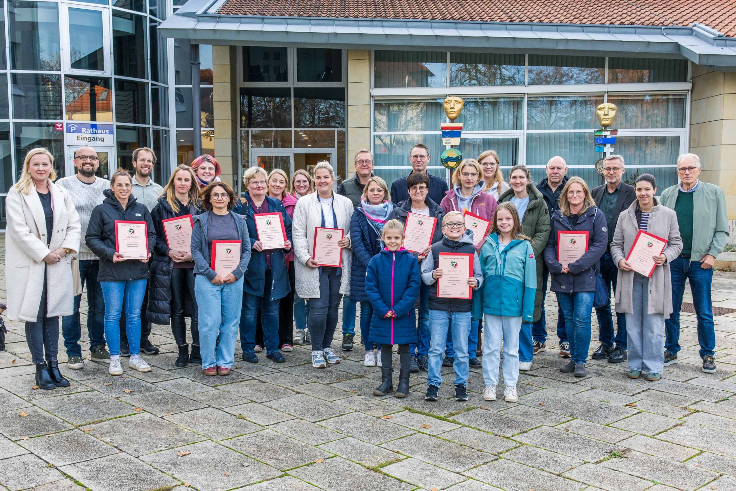 Insgesamt wurde an die 16 ausgezeichneten Einrichtungen eine Prämiensumme von 8.380 Euro ausgeschüttet. „Ich bin wirklich sehr beeindruckt von diesem tollen Ergebnis sowie von der Bandbreite der Projekte, die Sie in den letzten Monaten in Ihren Schulen und Kindergärten durchgeführt haben“, lobte Bürgermeister Steinkamp und motivierte alle Anwesenden, auch im kommenden Jahr so eifrig an dem Projekt weiterzuwirken.