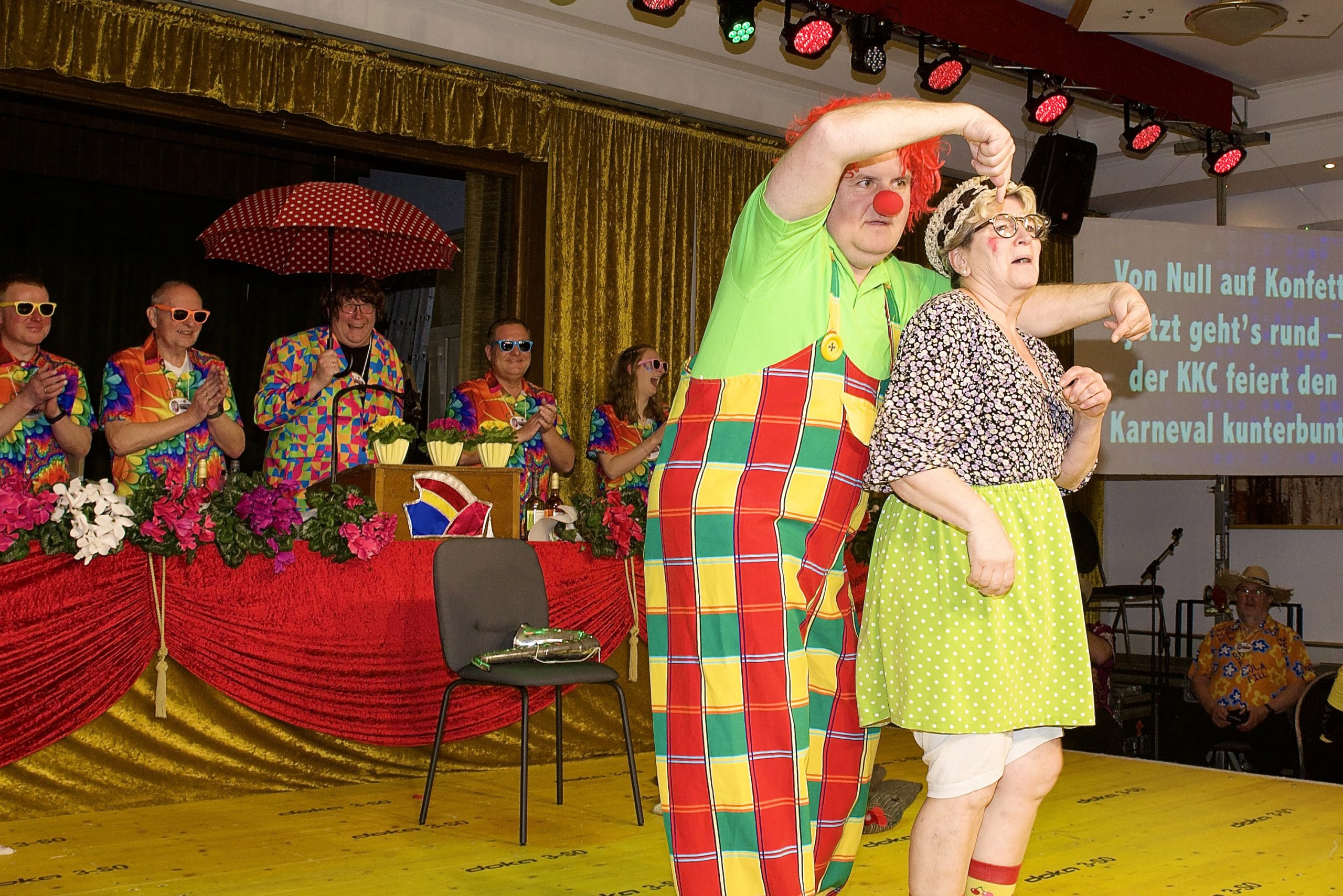 Prinz Albin I. nutzte die Bühne auf dem Kostümfest, um sich ganz besonders bei Gregor Siebrands zu bedanken. Er habe ihn vor einigen Jahren in den Hollager Karneval geholt und ihm die Regentschaft somit überhaupt erst ermöglicht. Siebrands ließ auf der Bühne sein Showtalent aufblitzen, was in KKC-Kreisen durchaus als Bewerbung auf die Nachfolge von Albin gewertet werden könnte. Auch besonders, aber nicht erwähnt: Erstmals in der Geschichte des Kolping-Karneval-Clubs nahmen an diesem Abend zwei Frauen Platz in den Reihen des Elferrats. Experiment geglückt: die beiden verbreiteten – zumindest aus dem Blickwinkel des Publikums betrachtet – mehr Stimmung als die übrigen Herren in der Riege zusammen. Zum Abschluss warf Ansgar Speer noch einen kurzen Blick auf die kommende Session. Dann feiert der KKC sein 80-jähriges Bestehen mit den Reppischfägern aus der Schweiz als Gäste.