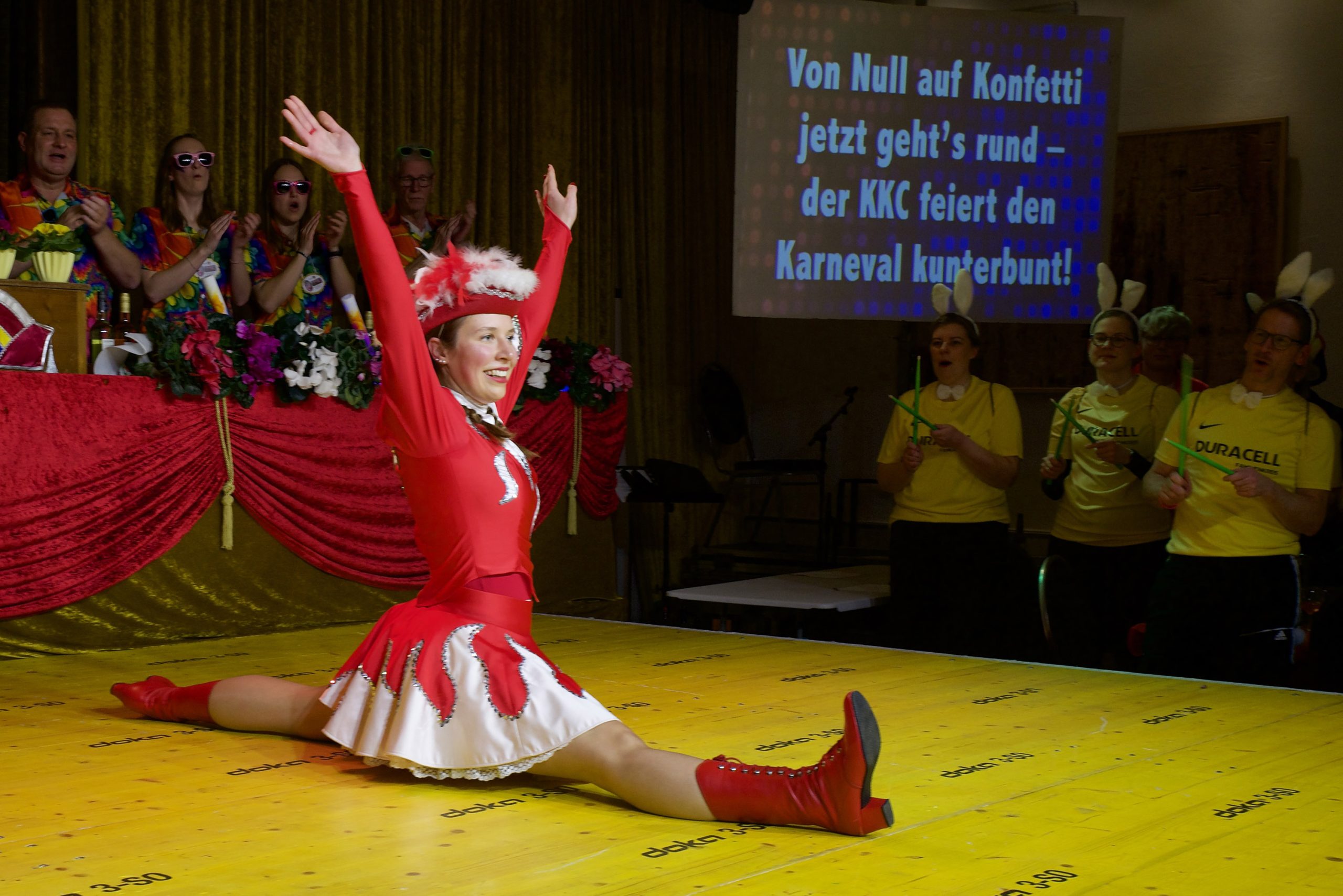 Der Weg war somit bereitet für einen besonderen Auftritt: den letzten von Funkenmariechen Maja Torbecke. „Du standest viele Jahre für uns auf der Bühne und hast dabei Höhen und Tiefen durchschritten“, sagte KKC-Präsident Ansgar Speer emotional. „Zwei Jahre musstest du verletzt pausieren, aber du hast dich immer wieder zurückgekämpft. Du hast Freude in unsere Herzen getanzt.“ Er dankte ihr herzlich mit einem Präsent, während das Publikum unterstützt von DJ Rolf „Maja-hii, Maja-huu, Maja-hoo, Maja-ha-a“ musikalisch mit stehenden Ovationen feierte.