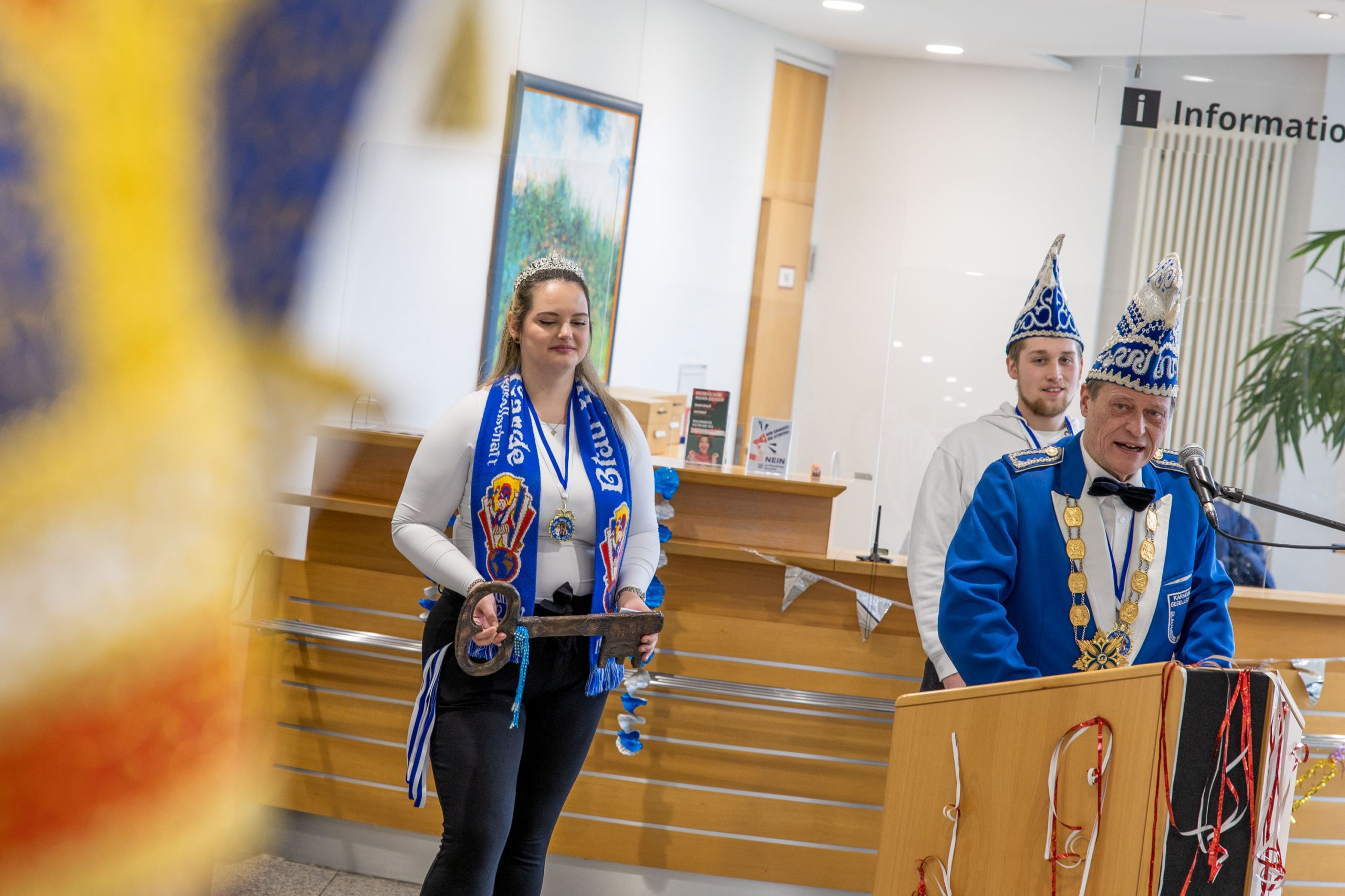 Zur traditionellen Schlüsselrückgabe am Veilchendienstag, 17. Februar, trafen sich die Wallenhorster Karnevalsvereine im Foyer des Rathauses. Sie feierten den Abschluss der Session und gaben mit den symbolischen Schlüsseln auch ihre Regierungsmacht zurück – zum letzten Mal an Bürgermeister Otto Steinkamp.