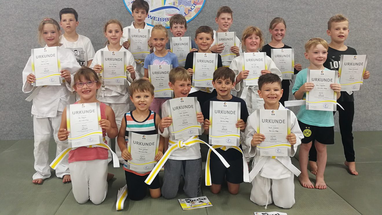 Vor den Sommerferien fanden wieder zahlreiche Judogürtelprüfungen bei Blau-Weiss Hollage statt. Insgesamt 47 junge Judoka erreichten das angestrebte Prüfungsziel und dürfen nun einen neuen Gürtel tragen.