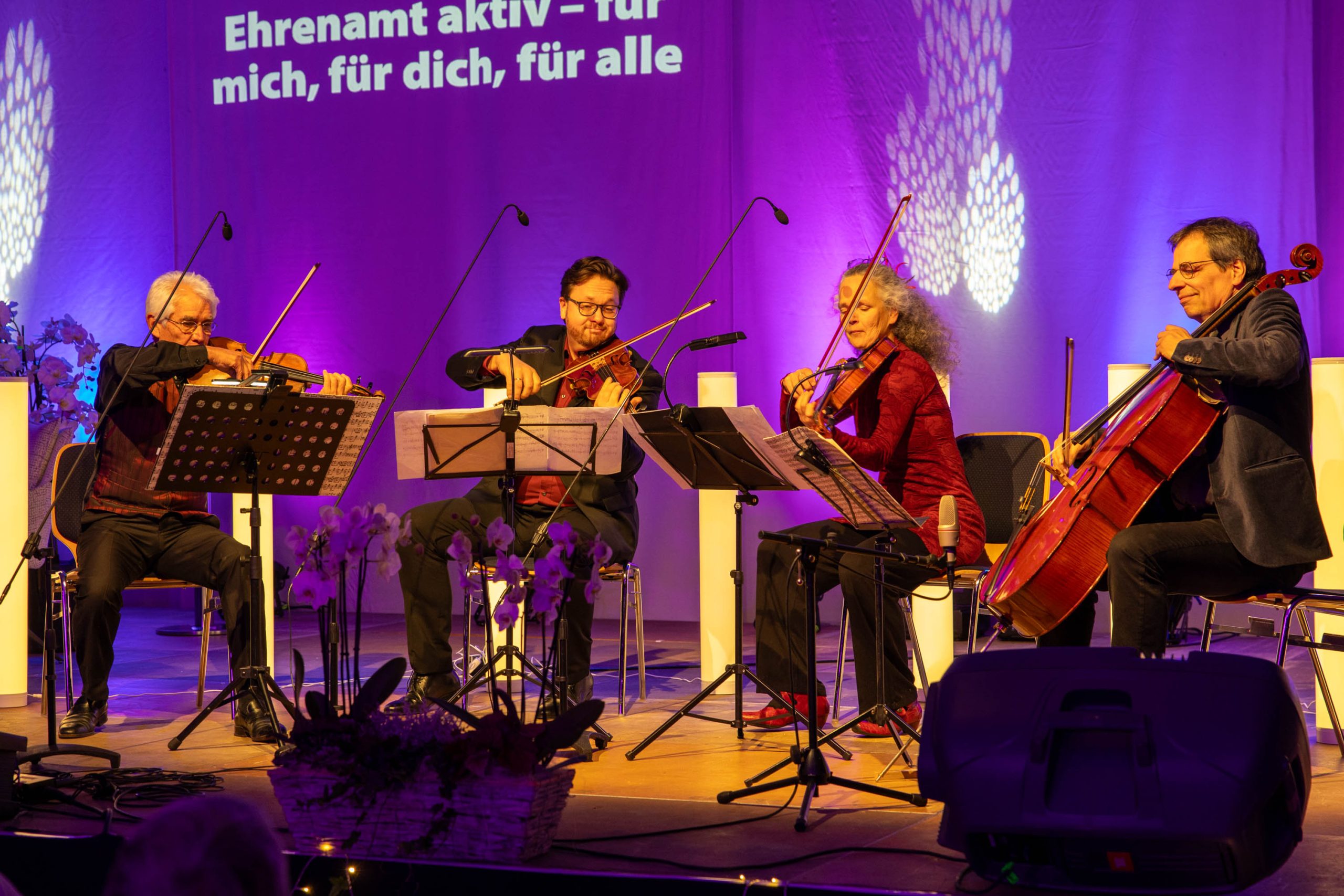 Im Showprogramm der Ehrenamtsgala brachte das „Carli Quartett“ mit ihren Tango-Nuevo-Arrangements argentinisches Flair in die Wallenhorster Sporthalle. Die Mitglieder des Quartetts – Gerardo Miranda und Danylo Gertsev (Violine), Marie Harders-Sauer (Viola) und Stefan Mertin (Violoncello) – sind an verschiedenen Musikhochschulen in Europa und Südamerika ausgebildet worden und wirken in verschiedenen Ensembles mit. Ihr Lebensmittelpunkt ist inzwischen Osnabrück, wo sie sich durch ihre Begeisterung zum Tango als Quartett gefunden haben.