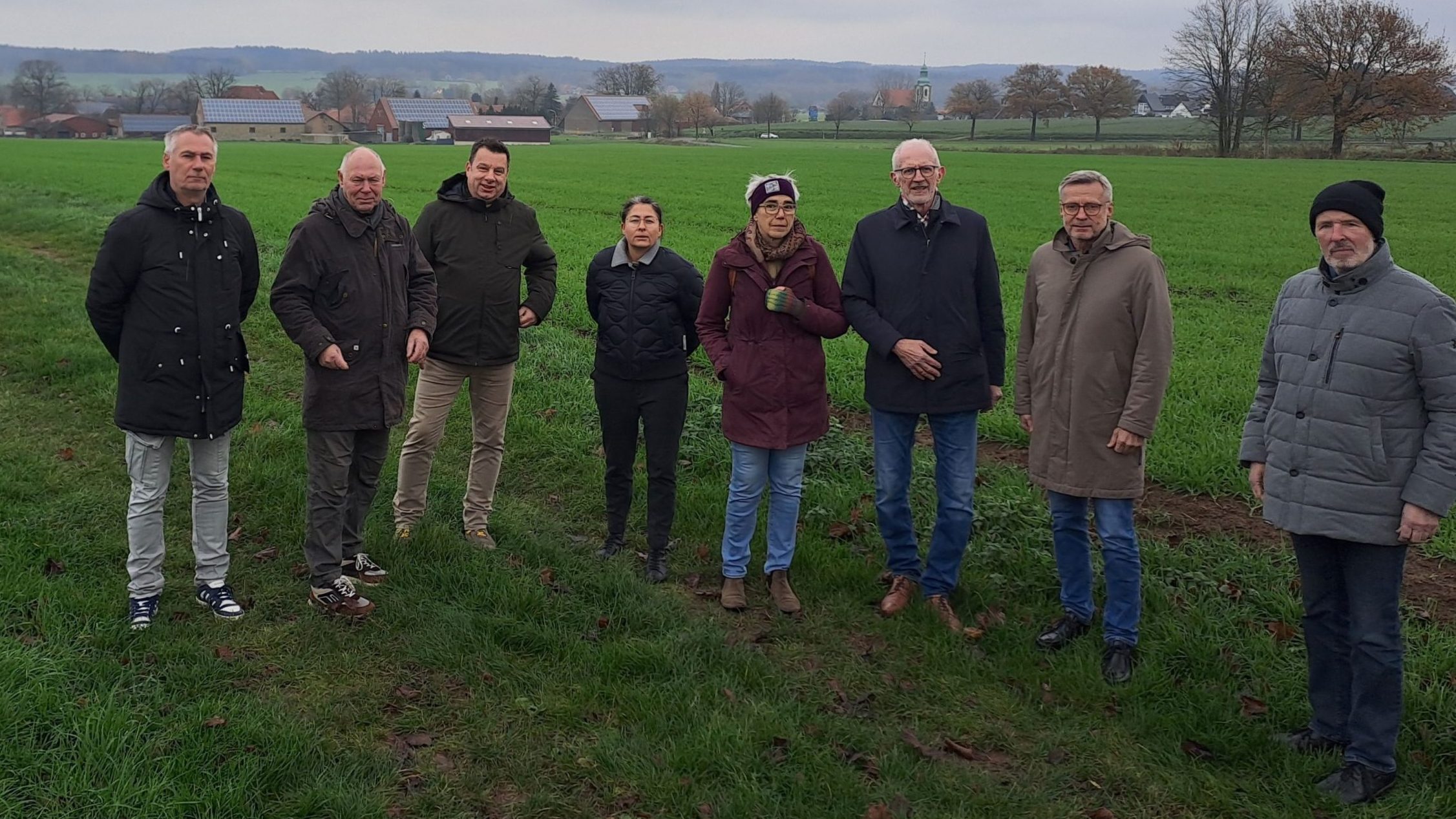 Machten sich vor Ort ein Bild: Günther Westermann (OV Bündnis / Die Grünen Belm), Rüdiger Schulz und Alexander Strehl (OV Bündnis 90 / Die Grünen Wallenhorst), Filiz Polat (MdB Bündnis 90 / Die Grünen), Jutta Paulus (Europaabgeordnete Bündnis 90 / Die Grünen), Viktor Hermeler (Bürgermeister Belm), Otto Steinkamp (Bürgermeister Wallenhorst) und Dr. Matthias Schreiber (Umweltforum Osnabrück e.V.). Foto: D. Meyer