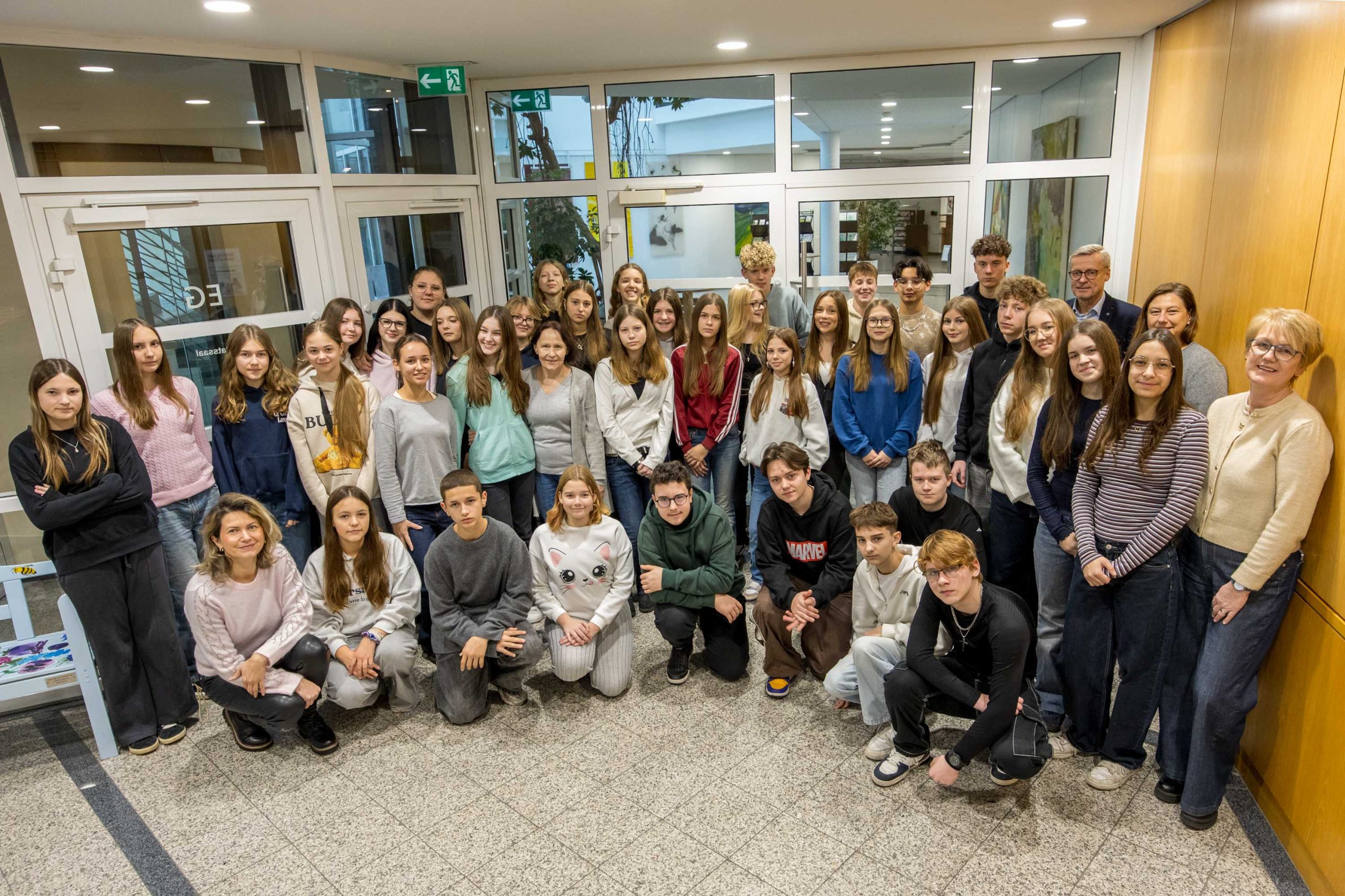 Bürgermeister Otto Steinkamp empfing die polnischen Schülerinnen und Schüler mit ihren deutschen Austauschpartnern und ihren Lehrerinnen Ilona Zebrowska und Malgorzata Wolszczak sowie Daniela Rethmann und Birgit Ostwaldt seitens der Realschule am Mittwoch (26. November) im Rathaus. Die Städtepartnerschaft laufe gut mit Verbindungen über Politik, Verwaltung und Vereine, sagte Steinkamp. „Es treffen sich aber auch regelmäßig Schülerinnen und Schüler. Und das ist uns ganz wichtig.“ Unter den Gästen entdeckte er auch bekannte Gesichter. Zwei Schülerinnen aus Stawiguda waren bereits mit ihrem Radsportteam in Wallenhorst zu Gast gewesen.